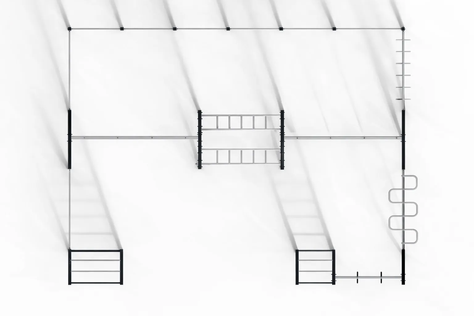 Venkovní tréninkový park se street workout prvky Multifunkční tréninková sestava pro venkovní použití Street workout konstrukce kombinovaná s fitness prvky Venkovní fitness park kombinující street workout a stroje Sportovní zóna venku se zařízeními na pylonech Venkovní fitness park pro trénink celého těla Venkovní posilovna pro veřejné i soukromé prostory Odolné street workout zařízení pro venkovní použití