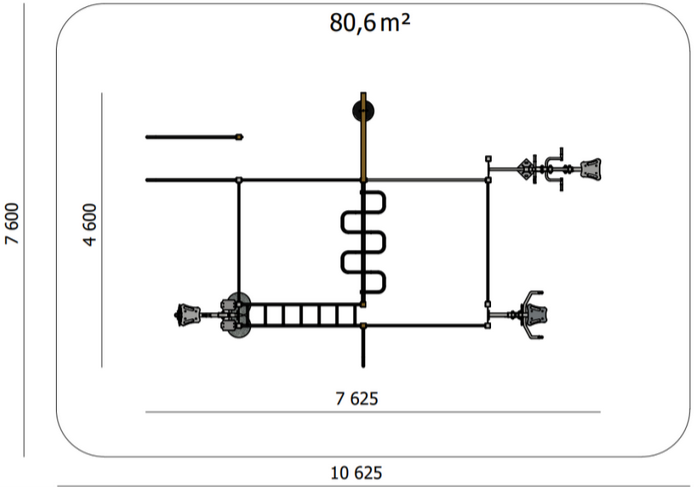 Multi Outdoor Park should be installed 300 mm below ground level, with a minimum diameter of Ø350 mm and a depth of 500 mm. The foundation should be made of B20 or B25 concrete.