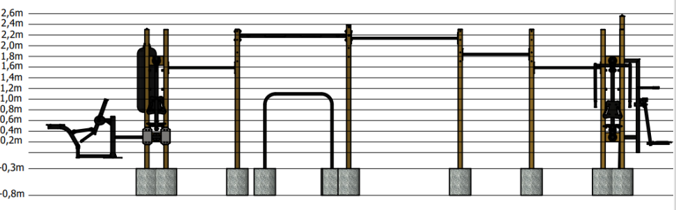 The combination of these elements enables strength training, calisthenics, functional workouts and cardio exercises in one outdoor fitness structure.