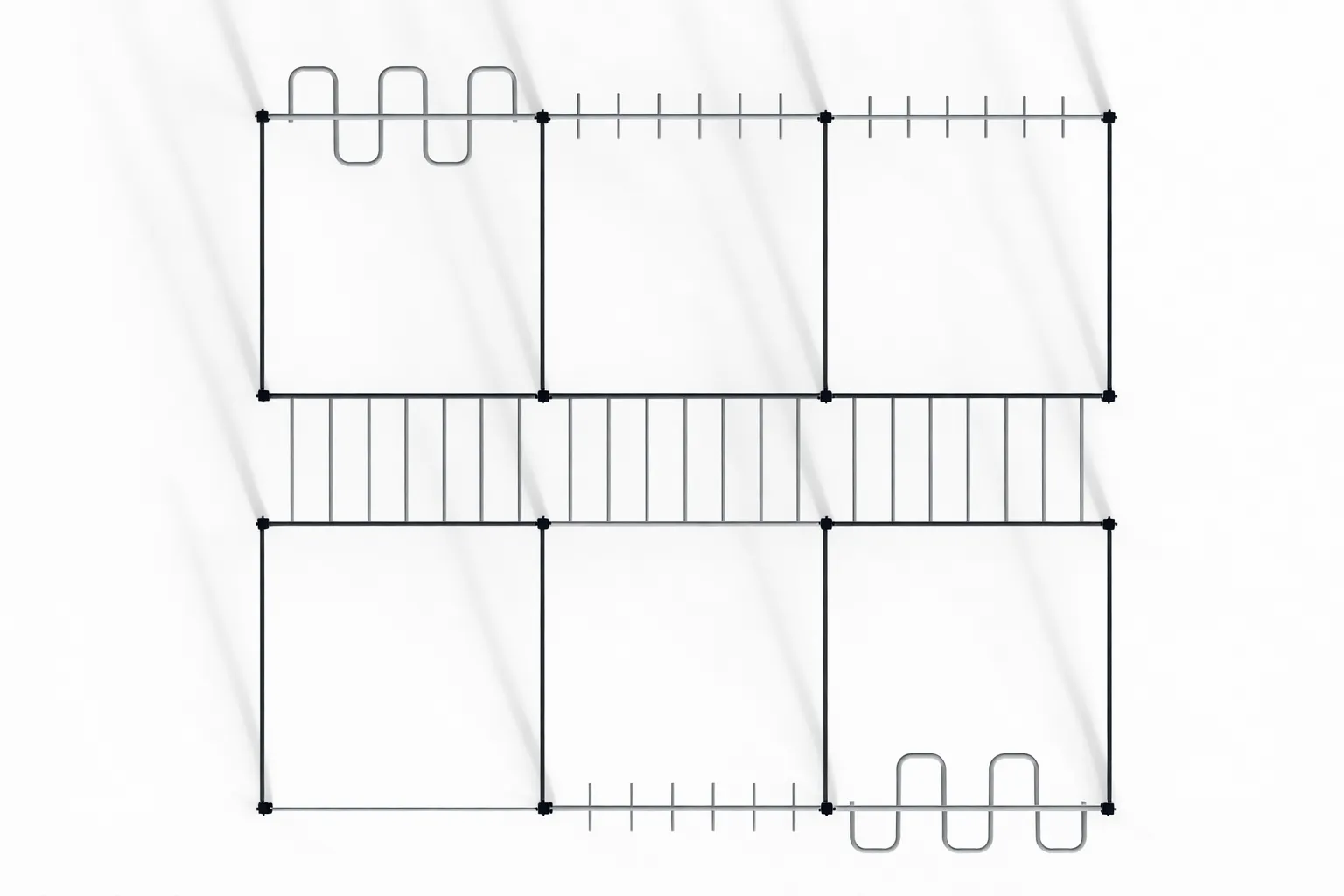 The Multi Outdoor Park set is fully configurable. Different fitness stations from the Street Workout series can be combined, allowing the set to be customized according to the project needs. The final configuration may include any compatible equipment, not only the ones shown in the visualization.